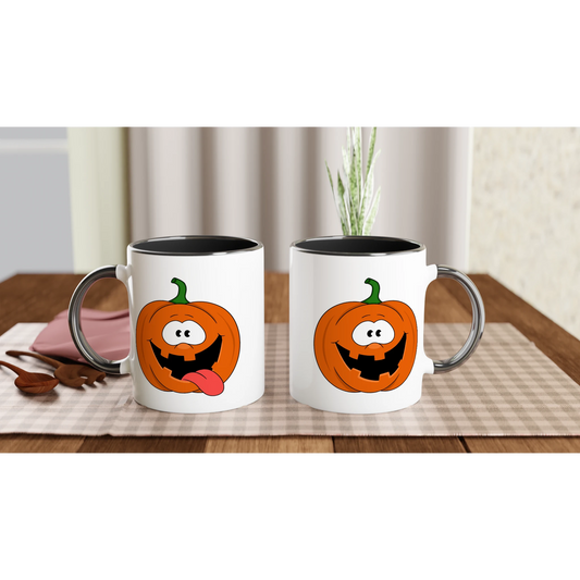Weiße Keramik-Tasse "Kürbis" mit farbiger Innenseite und farbigem Griff