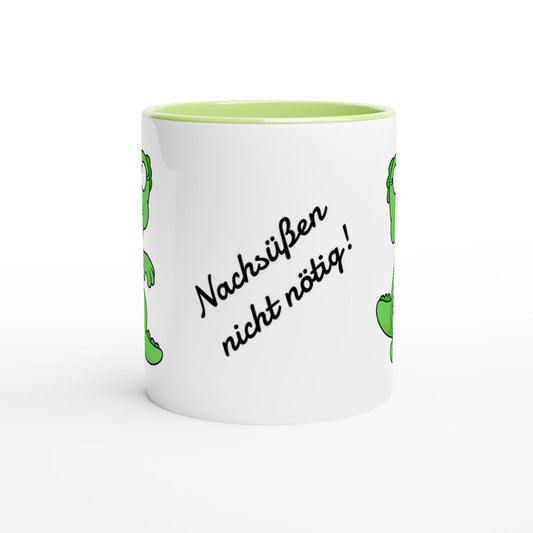 Weiße Keramik-Tasse "Dino-süss" mit farbiger Innenseite und farbigem Griff