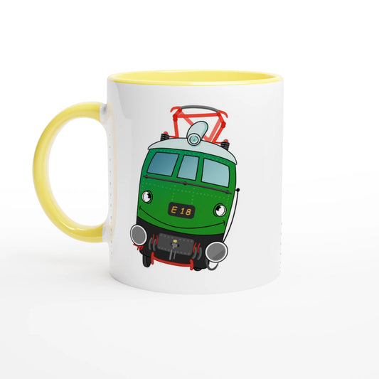 Weiße Keramik-Tasse "E18" mit farbiger Innenseite und farbigem Griff