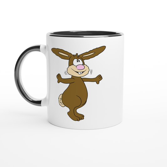 Weiße Keramik-Tasse "Benny the Bunny" mit farbiger Innenseite und farbigem Griff